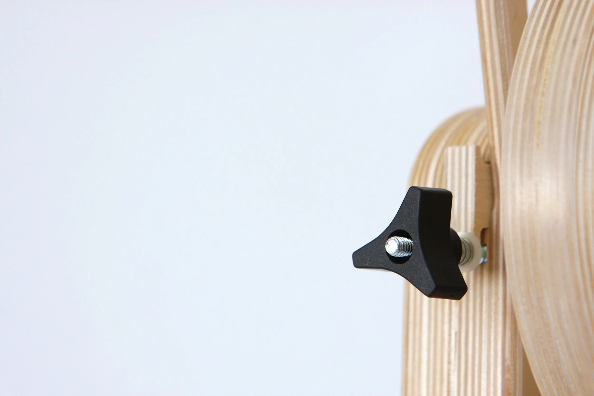 SpinOlution uses smooth black nylon flyer pegs that guide yarn evenly onto the bobbin without snagging or damaging fiber. The pegs are offset to help fill bobbins evenly and are easy to replace with a screwdriver. Peg height can be customized—4 oz pegs are ½" tall, 8 oz and 16 oz pegs are 1", and 32 oz pegs are 2" tall. Replacement pegs are available at www.spinolution.com/parts.